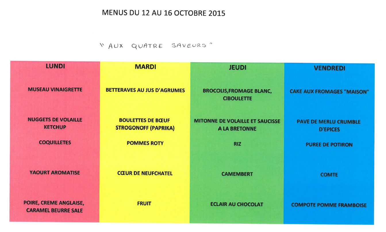 Menu – Ecole Primaire – Octobre 2015